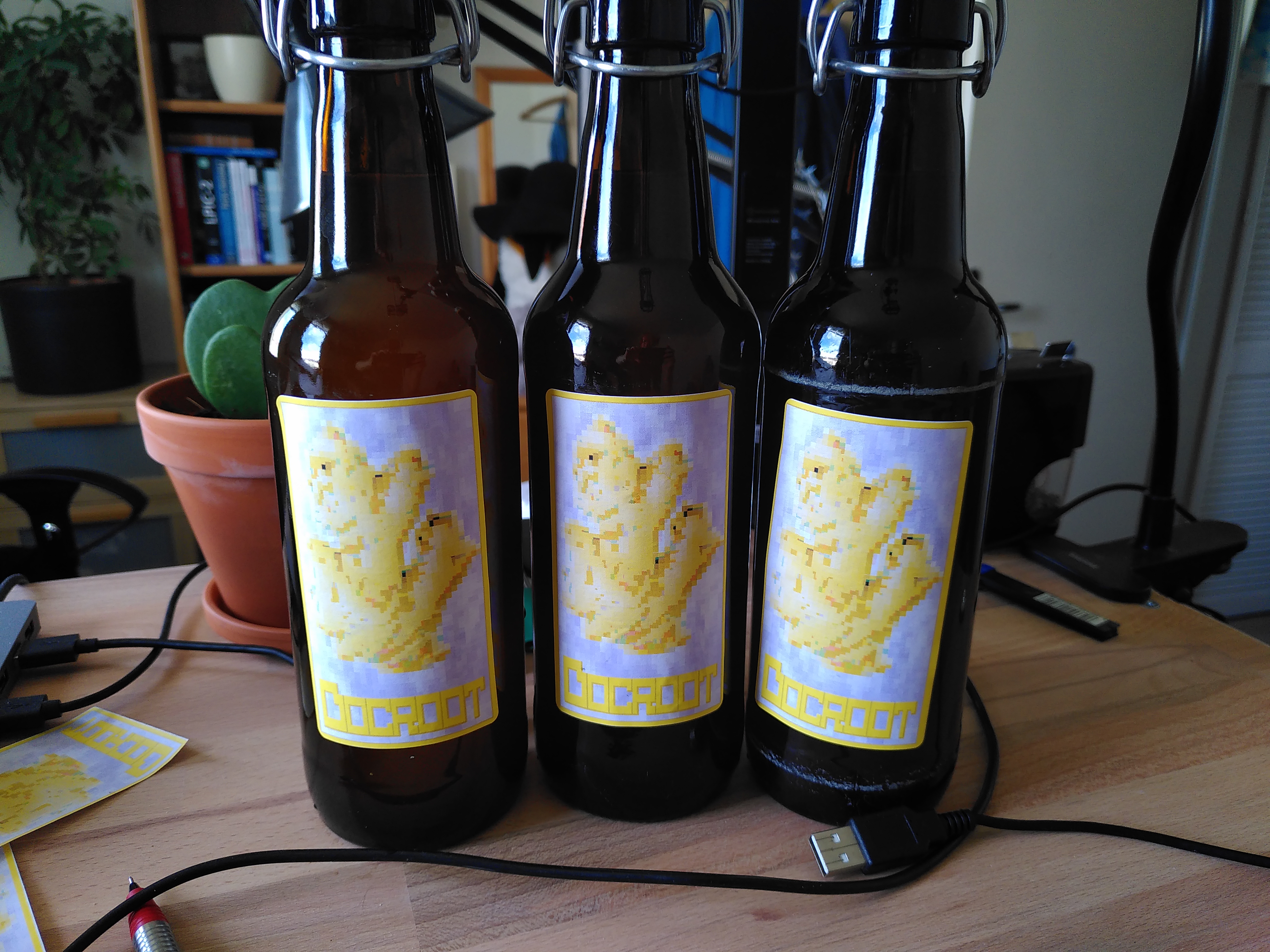 Das Docroot ist unser erster Ausbruch aus dem klassischen Hopfen-Malz-Hefe-Dreigespann. Im Kern ist es ein Witbier, es enthält also neben Gerstenmalz noch Weizenmalz und Haferflocken. Zur Bitterung verwenden wir Hopfen und zusätzlich Orangenschalen. Die Orangenschalen sind abseits seiner Bittereigenschaften auch eine Geschmackszutat, ebenso die Koriandersamen, die gegen Ende des Würzekochens hinzugegeben werden. Unser kleiner Twist ist eine ganze Menge Ingwer. Hafer, Orange und Ingwer sind wahrscheinlich die auffälligsten Geschmackgeber. Bereits beim Brauen schlägt der Hafer voll durch, obwohl es gar nicht viel ist. Später ist der Ingwer dominant. Im fertigen Bier wirken die drei Komponenten sehr fein zusammen.