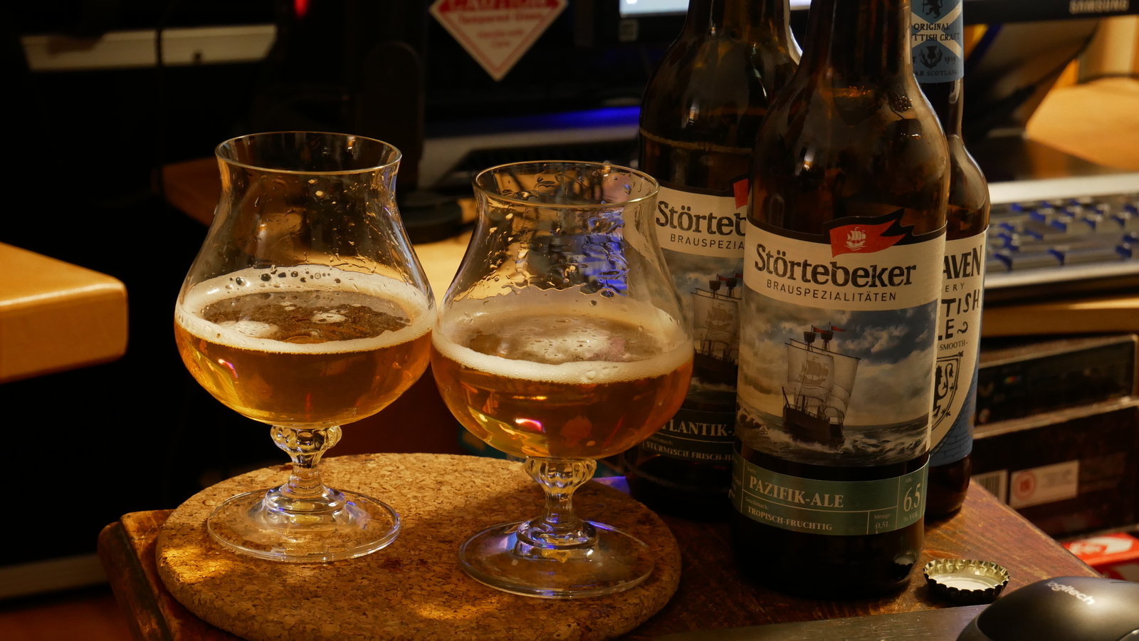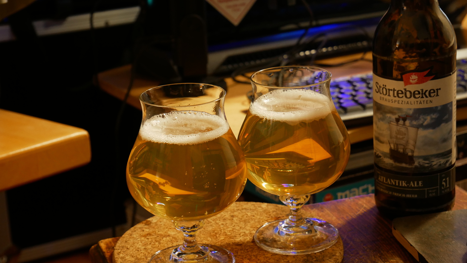 Nachdem wir den Umständen geschuldet eine Weile auf unsere Bierproben in geselliger Runde verzichten mussten, haben wir uns im Februar entschlossen zu schauen, wie die Experten so ein Tasting organisieren. Onlinebierproben scheinen ja gerade sehr beliebt zu sein, also haben wir uns ein bisschen umgesehen und spontan ein Verkostungspäckchen bei Störtebeker bestellt. Wenn nichts Selbstgebrautes da ist, ist deren Atlantik Ale schon eines unserer liebsten Alltagsbiere, also waren wir natürlich auf die versprochene (hopfige!!) Neuvorstellung gespannt.