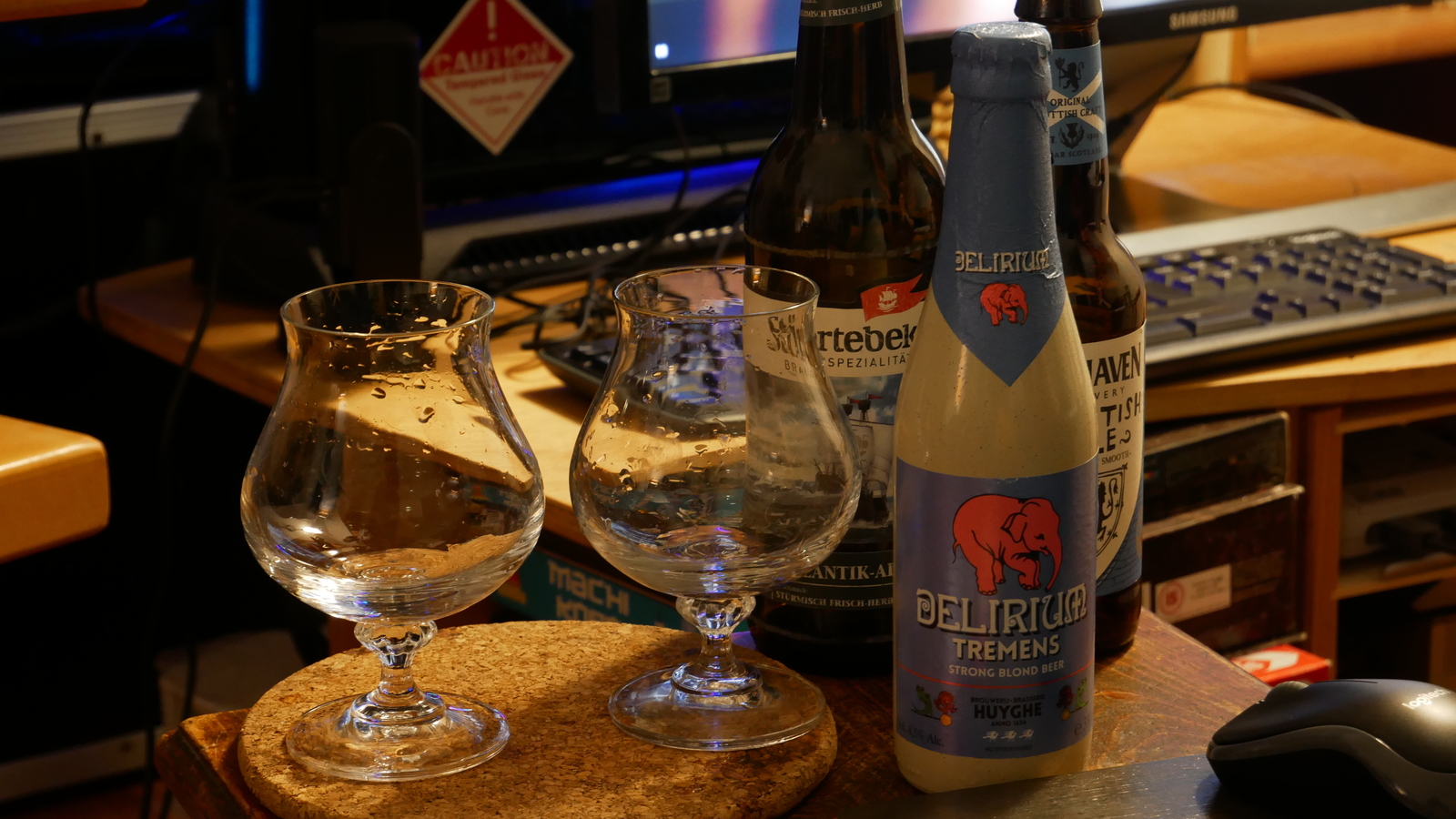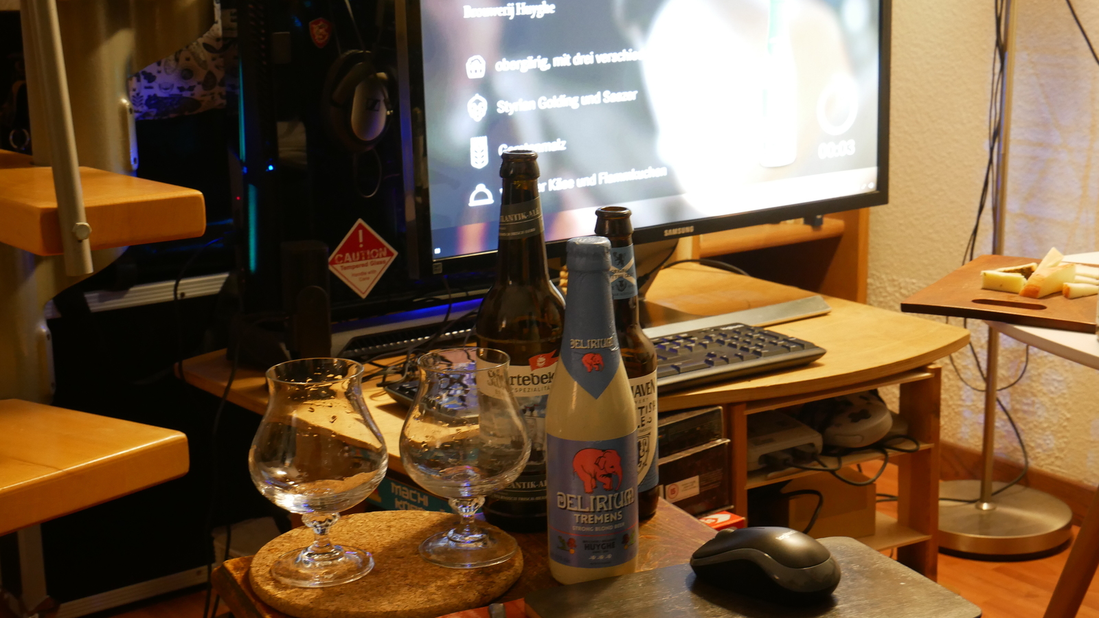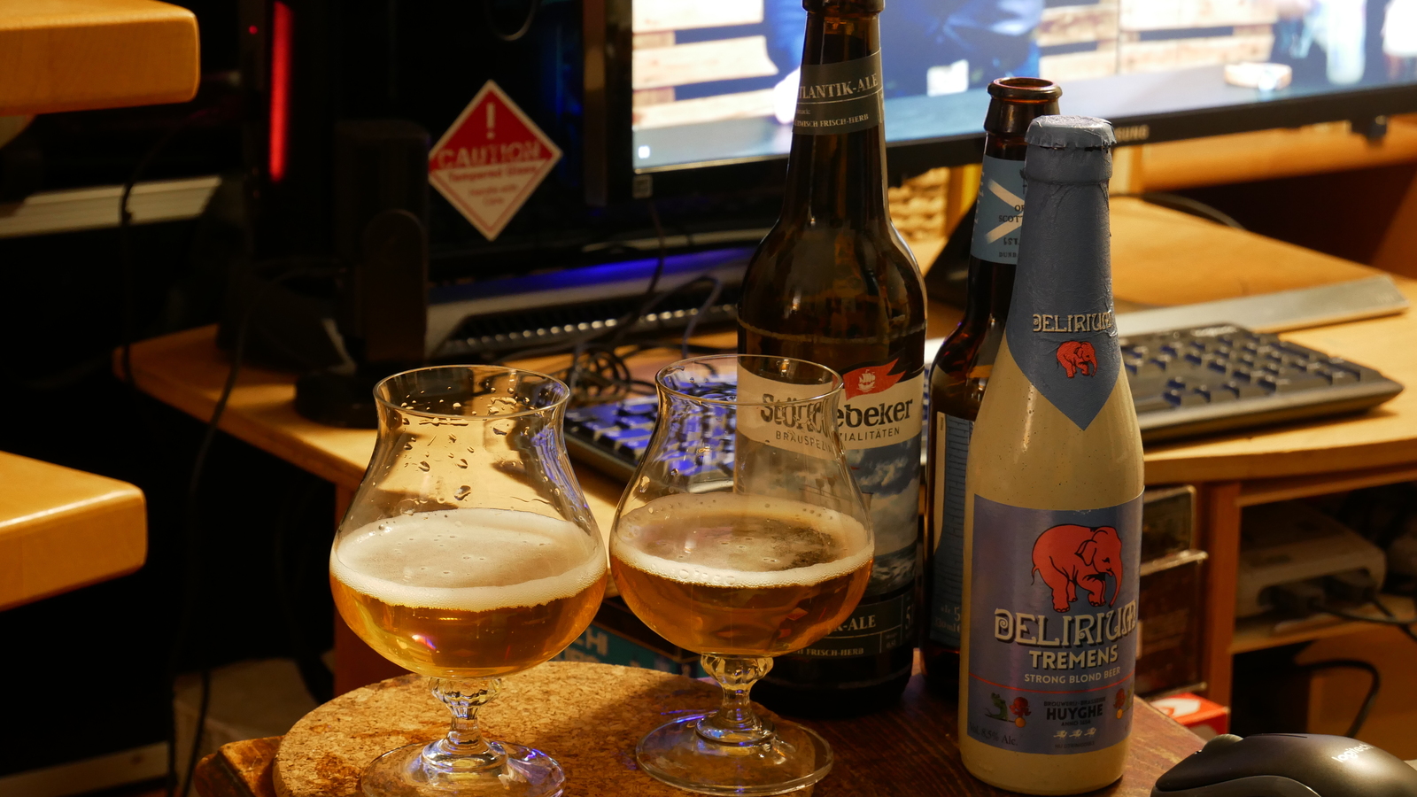 Es gab dabei jeweils ungefähr eine Handvoll Bier zu probieren. Die musste man sich vorher beim Anbieter kaufen, an den Livestream zur Verkostung kommt man theoretisch auch so. Aber wer will das schon schon anschauen, ohne etwas dabei zu trinken, und wahrscheinlich wollen die a) dabei was verdienen und b) später noch mehr verdienen, weil uns die Biere so gut geschmeckt haben.