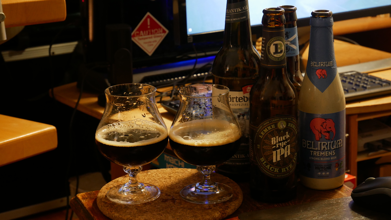 | Lemke Black Rye IPA | Schmeckt wie ein Kohleblock. Wenn man es im Mund aufschäumt, schmeckt es ein bisschen wie Erdbeerschokolade. Riecht im ersten Moment hopfig, das verfliegt aber sehr schnell |