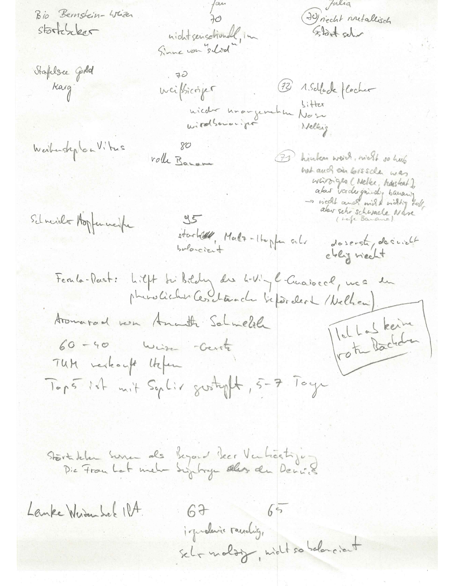 Weihenstephan Vitus: volle Banane, hinten weich, nicht so herb, hat was Würziges (Nelke, Muskat), aber die Banane dominiert